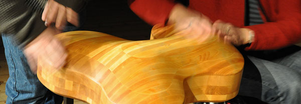 Fnittrofonen är ett skrattande musikinstrument för en eller flera spelande. När flera sensorer triggas samtidigt uppstår nya ljud. Visuellt är Fnittrofon en svävande, böljande träskulptur – lite amöba-liknande kanske. Men formen är faktiskt inspirerad av ett existerande musikinstrument – en experimentviolin från slutet av 1800-talet kallad violinoharpa.