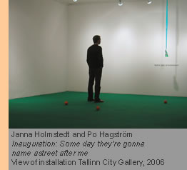 are two Swedish artists who work together under the name Trial and Error. Their work includes text, image, video and installations as well as intervention and online projects. View Monument for the Masses and their proposal for a monument to the city of Tallinn at www.trialerror.org.